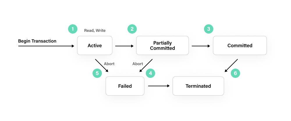- 종료(Terminated) - 마지막 상태로 데이터베이스 트랜잭션의 라이프 사이클의 최종 단계이다.