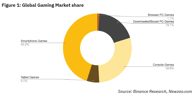 태블릿과 스마트폰 게임들을 하나의 큰 모바일 마켓으로 생각해 본다면, 우리는 이 분야가 이번 년도 2000억 달러 이상의 시장의 50%이상을 차지하는 것을 확인할 수 있다. 지정학적 분류로 본다면, 아시아 -태평양 지역이 가장 큰 마켓이다. 그 말인 즉슨, 이제 곧 중앙 아시아와 아프리카 그리고 라틴 아메리카가 빨리 성장할 수 있다고 다가오는 년에 기대할 수 있다.