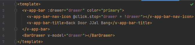 <v-app-bar-title>Back Door JJal Bang</v-app-bar-title>