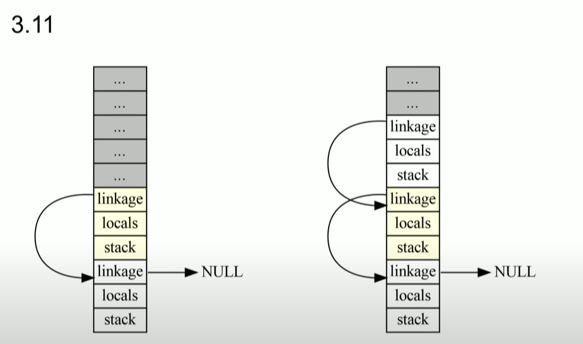 - 연속적으로 할당된 실행 프레임들