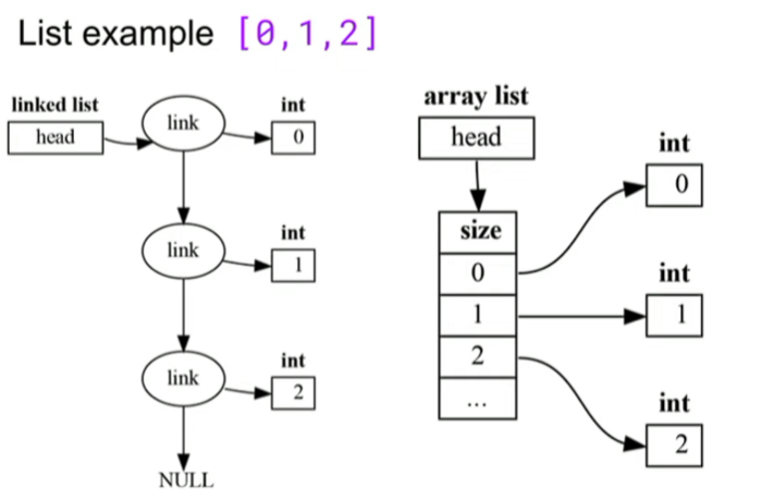 Linked List와 Array를 잠시 보고 가겠다. 만약 우리가 2번째 요소를 읽겠다고 하면 Linked List의 경우는 Head에서 2번째 요소까지 4번 메모리 접근을 해야하는 악재가 따른다. 하지만 Array의 경우는 두번의 메모리 접근(즉, Head에서 Array로 그리고 Array에서 각 요소로 한번에 접근)할 수 있다. 메모리 접근에서는 이득을 보인다. 만약 메모리를 더 할당하려면 Linked List는 메모리를 더 할당해야할 것이다. 따라서 이러한 의존성과 메모리 접근을 최대한 피하기 위한 프로그래밍 언어 설계는 힘든 편이기도 하다.