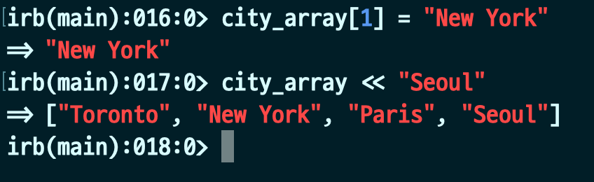 위의 예시를 보시면 city_array << "Seoul"이라는 기존 파이썬이나 다른 곳에서는 잘 못본 문법이 있습니다. 간단히 설명해 파이썬의 append()함수라고 생각하면 편합니다.