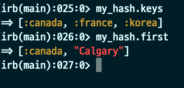 위의 예시처럼 심볼을 넣어서 값을 불러옵니다. 그 외에도 Hashes는 다양한 함수를 지원합니다.