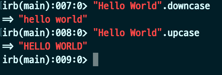 단순합니다. String뒤에 downcase와 upcase를 붙여주면 됩니다. 그 외에도 파이썬의 String 합처럼, String끼리 합치는 것도 당연히 가능합니다.