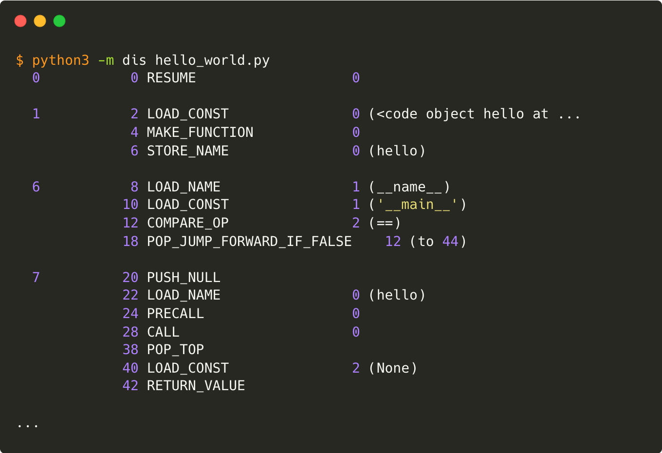 - 그 후 바이크 코드로 변환할 때, dis Module이 그 역할을 해준다.