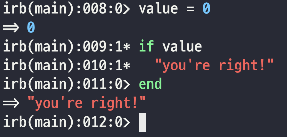 위의 예시처럼 value = 0인 상태에서 if value를 하면 값이 출력되는 것을 알 수 있습니다. 이 부분을 주의하셔서, 다른 nil의 경우는 python의 None하고 비슷하다 보시면 됩니다.