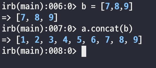 그 외에도 Ruby의 배열은 다양한 메소드를 지원합니다. last, first, concat가 있습니다. 이름을 보면 느낌이 오실겁니다.