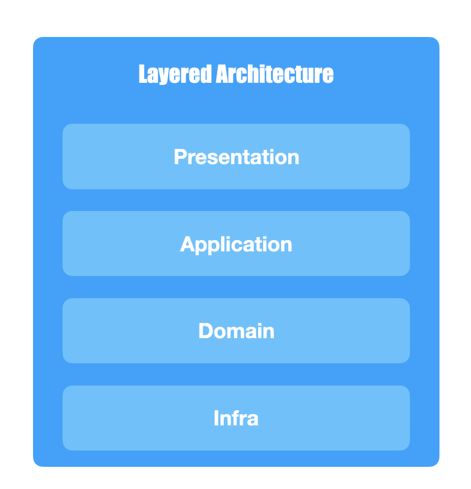 계층적 구조는 응용 프로그램들을 - Application이지만, 이에 대한 정확한 기준은 없는 듯 하다 - 분리된 레이어로 각각 분리하는 것을 뜻한다. 각각의 레이어는 Presentation(표현 계층), Application(응용 계층), Domain Layer(도메인 계층) 그리고 Infrat Layer(인프라 계층)으로 분리하며 각각의 역할은 다음과 같다.