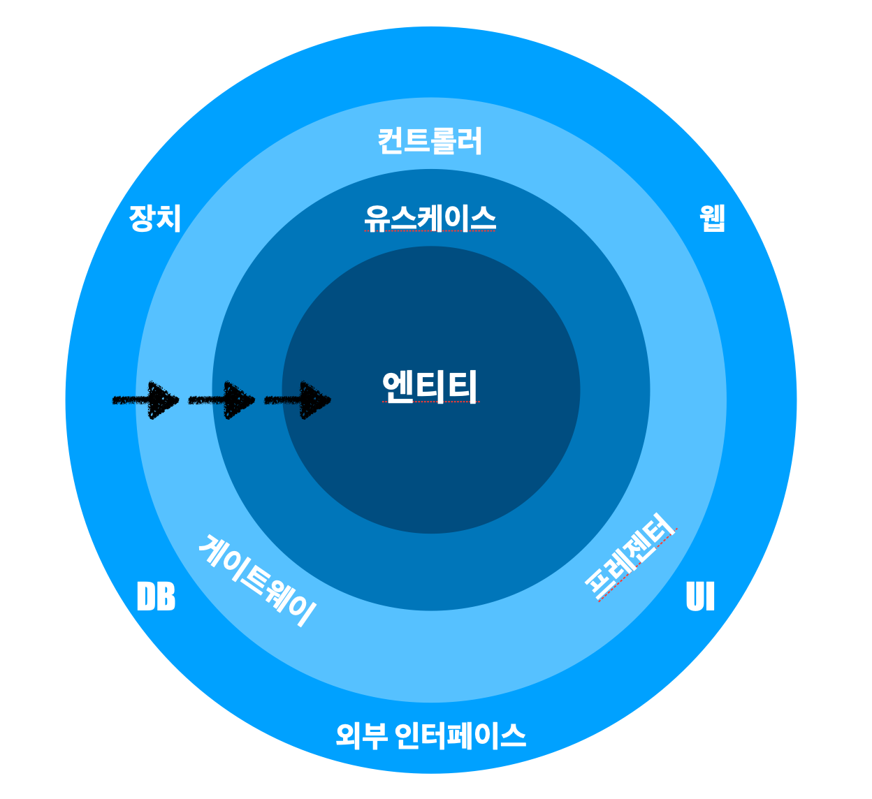 - 유스케이스는 엔티티로 들어오고 나가는 데이터 흐름을 조정한다. 엔티티가 자신의 핵심 업무 규칙을 사용해서 유스케이스의 목적을 달성하도록 이끈다.
