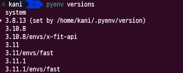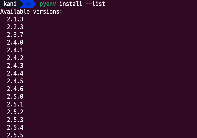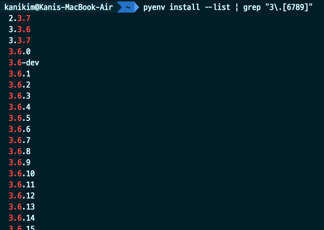 pyenv를 통해 설치하기 전, 어떤 파이썬 버전이 있는지 확인하기 위해서는 다음과 같은 명령어를 통해 확인할 수있다.
